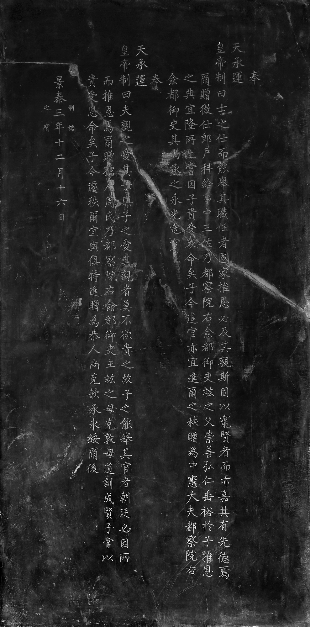 明诰封骠骑将军神枢八营参将鸣寰马公封盖